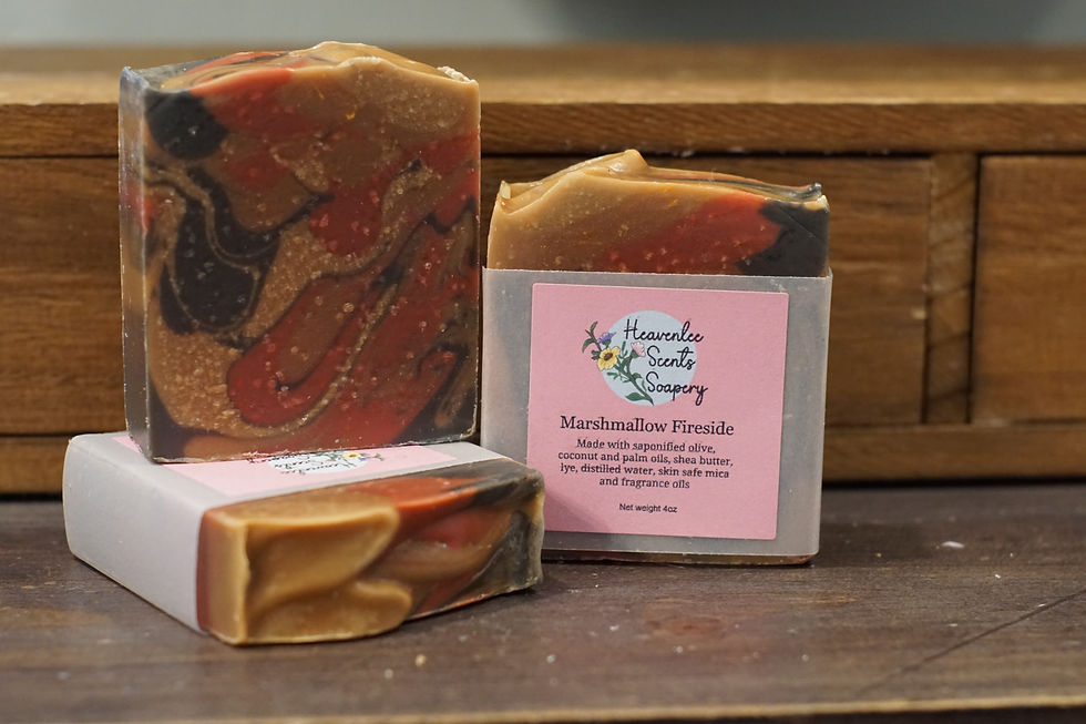 All of our soaps are made with sustainable palm oil, olive oil, coconut oil, shea butter, lye, distilled water, skin safe micas and quality fragrance oils or essential oils.